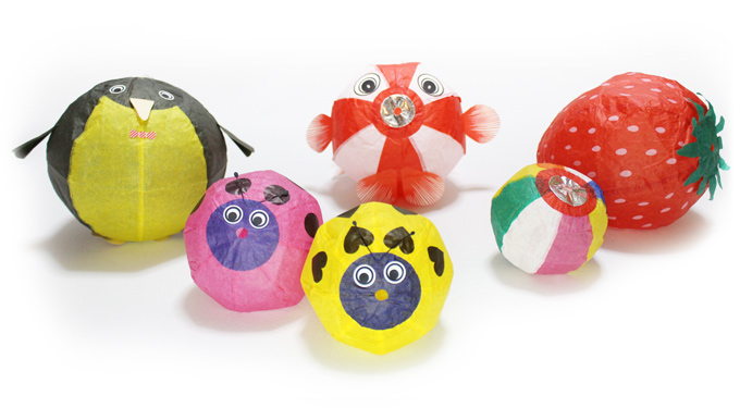 紙風船は日本の伝統的なペーパークラフト。日本の子供たちは昔からこの紙風船で遊び育ってゆきます。薄い紙でできているためとても軽く、室内で飛ばして遊ぶ他、最近では、パーティー、イベントや、室内での飾り、また、プレゼントとして用いられています。