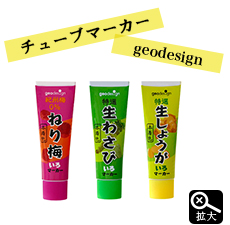 わさびはピリッと蛍光グリーン、生姜はキリっと蛍光イエロー、ねり梅は鮮やかな蛍光ピンク。